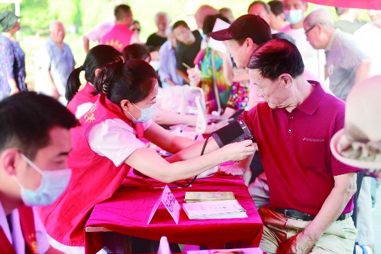 近日,在浙江義烏繡湖公園,義烏市高血壓防治中心暨北苑街道社區衛生服務中心、義烏市疾控中心、義烏市精神衛生中心聯合開展義診活動。醫生現場為市民測量血壓、血糖,提供健康咨詢、用藥指導、中醫拔罐、針灸等服務,宣傳高血壓防治知識,引導市民養成健康的生活習慣。(錢旭升)