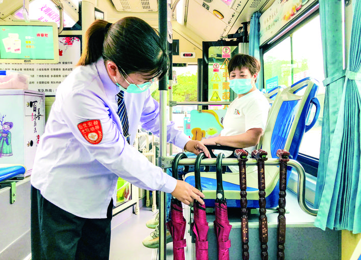 10月11日開始,金華市區28路公交線變身“敬老文明”主題車廂。 28路公交車客流量較大,以老年乘客居多,結合乘客結構特點,車廂里配備有愛心拐杖、愛心披肩、老花鏡、急救藥箱……車廂的座椅擋板、車廂后部還有以“敬老”為主題的孝道故事,讓乘客在潛移默化中受到孝文化的熏陶。(李建林)