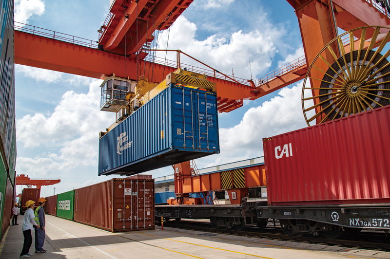 10月15日,鐵路金華南集裝箱智能場站整齊堆放著2000余個集裝箱。3臺橙色龍門吊僅需兩個小時就能夠精準有序地從中“摘選”出50個目標集裝箱調運至貨運列車上。據了解,該鐵路集裝箱智能場站管理系統不久前在金華南集裝箱場站通過驗收,投入應用。該系統為鐵路集裝箱運輸帶來全流程無紙化作業、集裝箱精準定位、不停留智能閘口等一系列生產方式的變革。(胡肖飛)