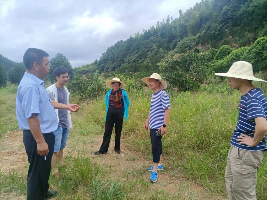 徐金平(右二)在鄉間調研。衢州農行供圖
