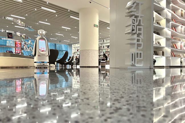 10月20日,在嘉興市黨群服務中心,AI黨建助理機器人“小度”為參觀者導航引路的同時,還能介紹中國共產黨的百年歷史,帶給參觀者更好的體驗。(王振宇)