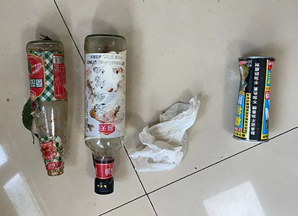 垃圾袋中裝有鐵罐、玻璃瓶。蕭山公安供圖