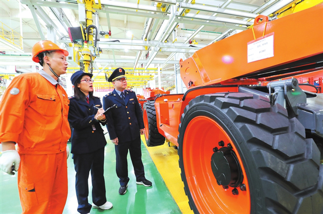 11月1日,湖州市德清縣市場監督管理局雷甸所執法人員走進浙江鼎力機械股份有限公司開展“浙品碼”上門指導服務。為加快實現從產品生產、銷售到消費全鏈條信息可溯,德清縣市場監管局在轄區內開展生產企業“浙品碼”賦碼工作,確保實現產品來源可溯、去向可查、責任可究。(謝尚國)