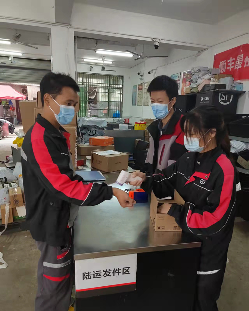 為確?爝f包裹收發安全,仰義街道各快遞網點建立了一整套防控流程。每天早上,營業點所有從業人員經過測溫、查驗健康碼、登記、消毒后進入網點開始一天的工作!翱蛻魜砦覀儬I業點寄快遞,我們都要查看健康碼、測量體溫、進行登記!币豢爝f網點負責人劉珠說。
