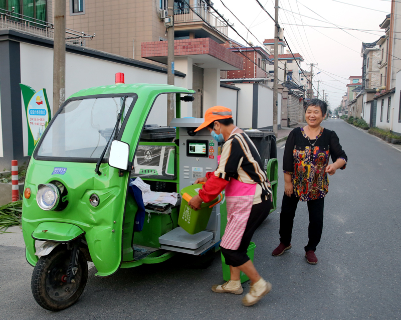 自今年5月該村全面實施生活垃圾“四定一撤”模式以來,每天清晨,村民們將生活垃圾拿到指定點位,“嘀”的一聲,垃圾分類情況、重量及相關信息便會實時上傳至區級平臺,村民們也能獲得相應的積分獎勵。
