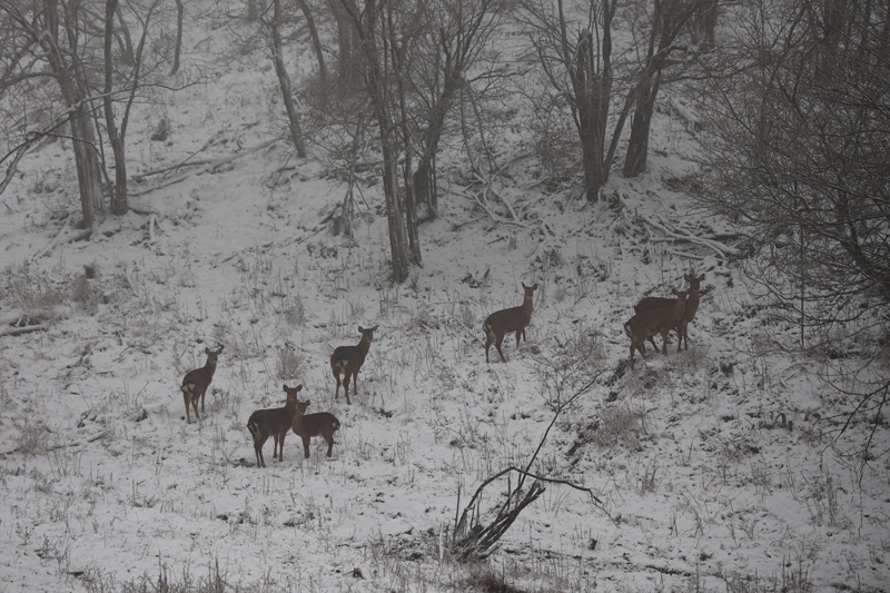 位于杭州市臨安區的浙江清涼峰國家級自然保護區,從今天凌晨3點開始下起了小雪。在保護區海拔1200米處的千頃塘保護站,工作人員清晨一推開門,便發現整個保護區已銀裝素裹,樹枝上披上了一層雪,奔跑的野生梅花鹿在大雪覆蓋的地面上歡脫跳躍。