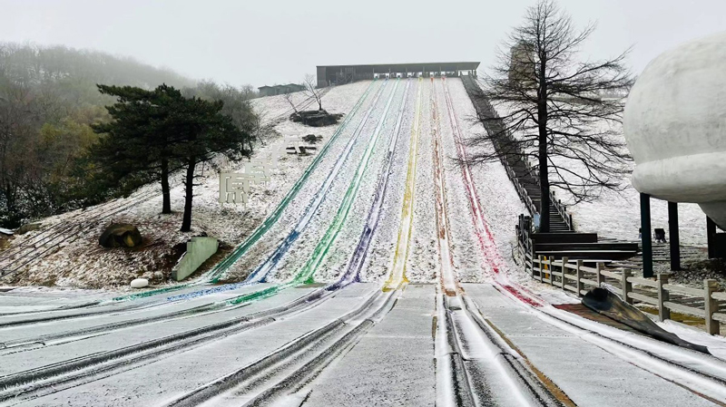 游客在雪地上留念。安吉縣委宣傳部供圖