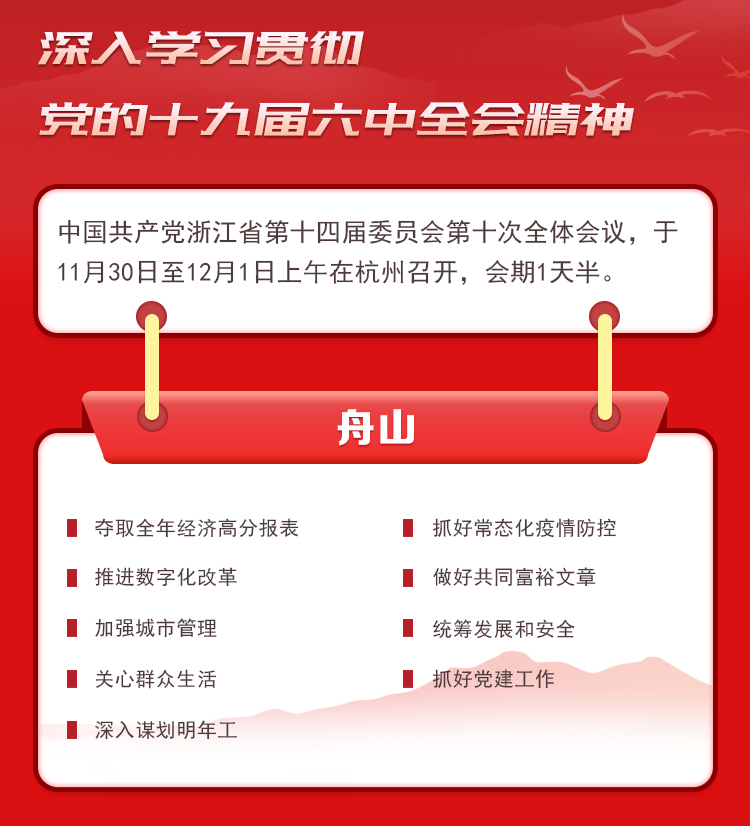 會議要求,要全面推動全會精神落地落實,切實抓好當前各項工作。要奪取全年經濟高分報表,對照各項年度目標任務,狠抓有效投資和重點項目落地開工,加快打造大宗商品配置基地,高質量完成年度民生實事項目。要抓好常態化疫情防控,繃緊疫情防控這根弦,保持應急響應指揮體系激活狀態,嚴格落實“外防輸入、內防反彈”各項舉措。要推進數字化改革,加快推進省級重大應用市縣貫通及“152”體系和“141”體系貫通,推動向鄉鎮以下延伸,打造最佳應用。要做好共同富裕這篇文章,切實推進“擴中”“提低”行動。要加強城市管理,扎實推進安置房建設等工作,繼續加大城市精細化管理力度。要統籌發展和安全,抓好漁業、企業等安全生產工作,確保社會和諧穩定。要關心群眾生活,保障優撫對象、困難群體的基本生活需求,保證市場供應和價格穩定。要抓好黨建工作,持續推動黨史學習教育走深走實,穩步推進各級領導班子換屆。要深入謀劃明年工作,研究提出明年年度目標和重點工作任務,謀深謀實思路舉措。(葉賓得根據舟山日報整理)