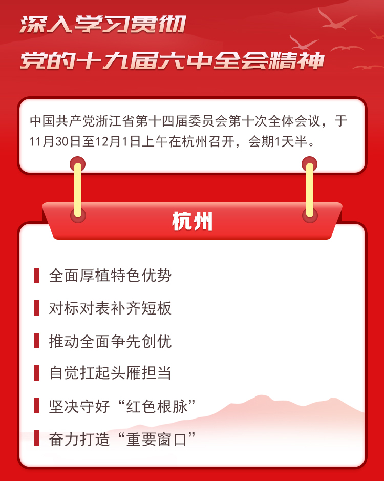 會議強調,這次省委全會是在浙江上下深入學習貫徹黨的十九屆六中全會精神之際召開的一次重要會議。要深刻認識省委全會精神是貫通把握政治邏輯、理論邏輯、實踐邏輯的輔導報告,是貫通把握歷史、現實、未來的鄭重宣示,是貫通把握中央決策、省域實踐、基層探索的指導教材,持續推動學習宣傳貫徹往深里走、往心里走、往實里走。