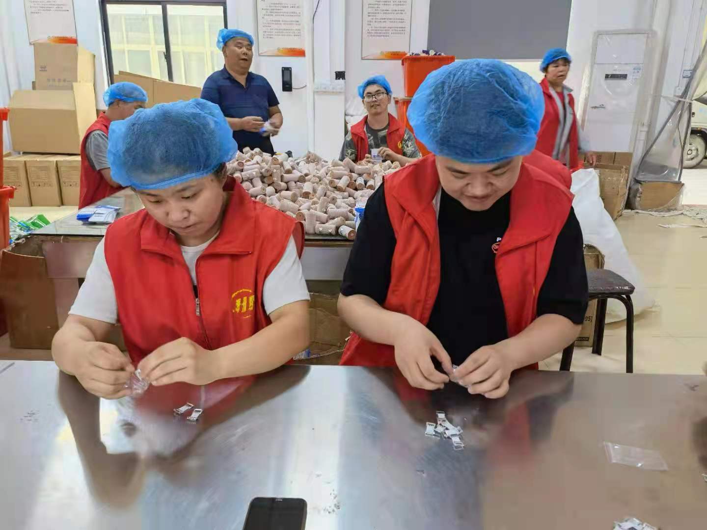 智力(精神)殘疾人在殘疾人之家工作。陳玉蘭攝