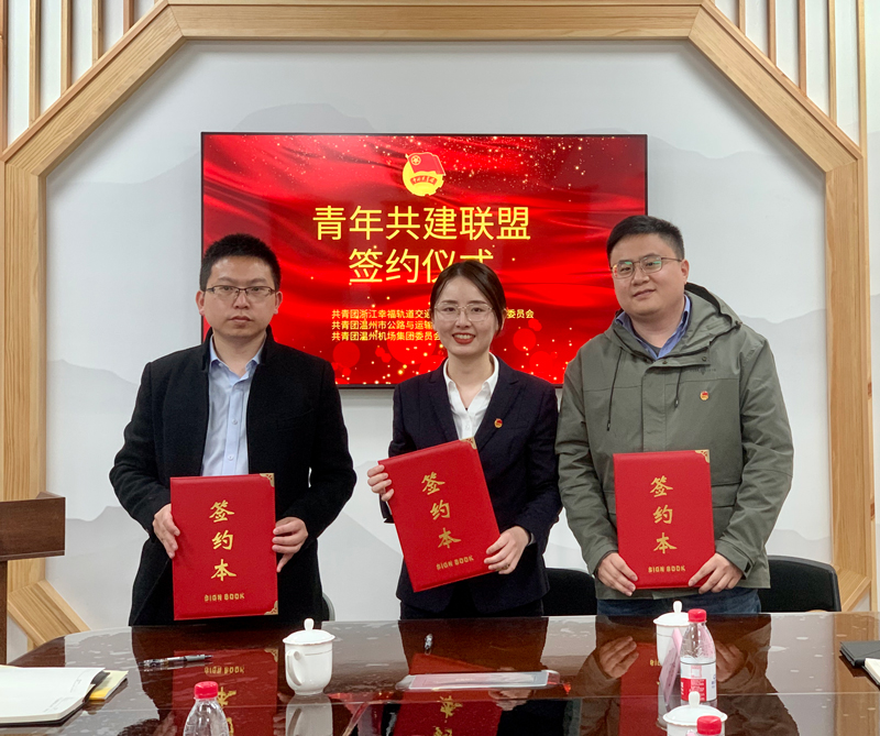 據悉,為踐行“請黨放心,強國有我”的莊嚴承諾,近日,幸福軌道公司團委聯合溫州市公運中心團委、溫州機場集團團委在溫州軌道S1線德政站會議室舉行簽約儀式,“青年共建聯盟”正式組建。