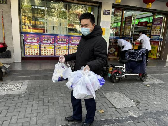 黨員陳磊便是其中一員,他負責為封鎖小區獨居老人購藥配送,每天來回于小區和藥店,有時候附近配不到還要步行至幾公里外購買,但每次把藥交到居民手上,他便一點也不覺得累了。