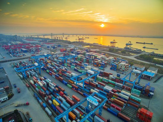 一年后的2021年10月22日,蘇皖合作示范區安徽定埠港集裝箱航線啟笛首航。貨物經過這里往下游的長三角地區運輸,相比傳統的長江水道,航程縮短100多公里,極大地節省了企業運輸成本。