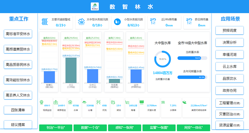 目前,“數智林水”的入倉數據已達18.5億條,平均每日新增80萬條,數據也已經和應急、城管、氣象、消防等部門全面共享。