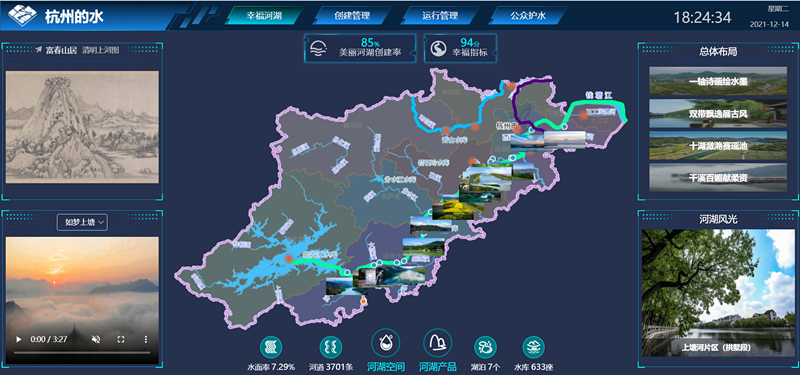 據悉,該場景主要分為水域監管和美麗河湖游覽圖小場景,既實現了杭州全市水域微監管,也形象生動全面地展現了杭州的美麗河湖。