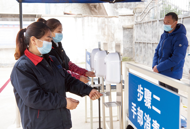 連日來,在金華市一電器有限公司大門口,員工在上班前有序排隊經過自動測溫儀測溫和登記信息后,使用非接觸式自動感應消毒器給雙手消毒再進入車間。據介紹,非接觸式自動感應消毒器噴灑消毒液給雙手消毒,只需短短幾秒鐘,方便快捷。同時,員工每天上班前都要把健康碼、行程卡發到員工群里,做到防疫生產兩不誤。(時寬兵)