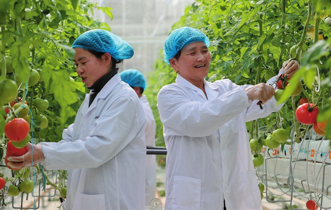 1月16日,湖州市德清縣阜溪街道龍勝村水木蔬菜工廠,工人采摘番茄、分揀、裝車供應市場。該蔬菜工廠以番茄種植為主,采用“大數據+人工智能”技術,全季節生產,近期每天都有1500多公斤新鮮番茄錯季搶“鮮”上市,線上直播帶貨和線下銷售,供應春節市場,豐富市民菜籃子。(謝尚國)