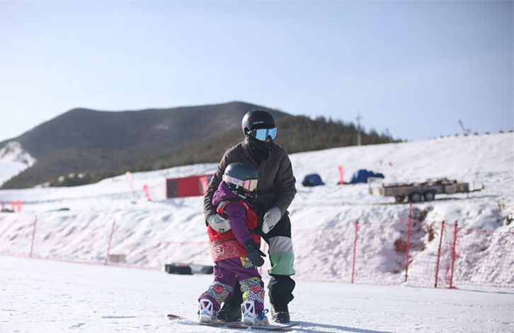 金彬彬教女兒滑雪。受訪者供圖