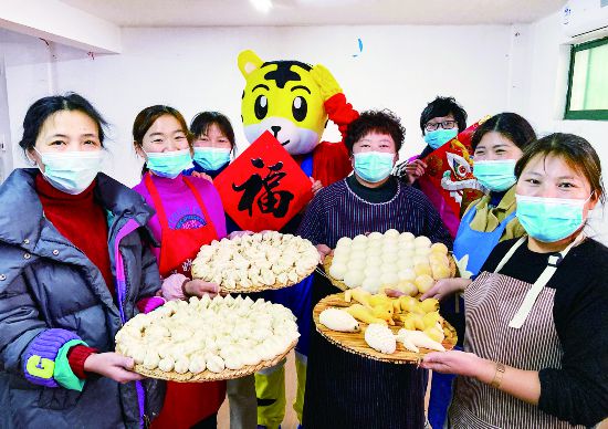 1月19日,在金華婺城區城西街道河盤橋社區活動室,部分留金過春節的外來務工人員一起做花饃、蒸饅頭、包餃子,提前感受家鄉過年的喜慶氣氛。河南開封籍的于紅霞說,今年她響應政府號召留金過春節,丈夫平時開大貨車,常年奔波在外,非常辛苦,趁著春節可以在家里好好休息,她準備了一些家鄉特色的菜肴和面食。(時寬兵)
