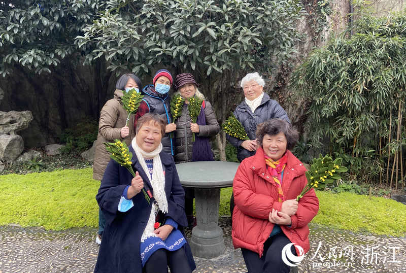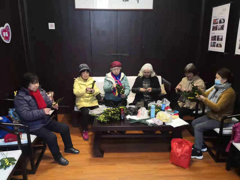 “我們經常與附近居民交流,幫助他們培育興趣小組!钥棔选幙楆犑2016年成立的,當時是十多個人組成的興趣小組,我們通過俞慧阿姨這樣有編織技巧的老師,將有編織興趣的零散個人組織聚集起來!庇H民社會工作服務中心工作人員說,“去年編織隊接到了北京冬奧會花束編織的任務,我們就和上城區紫陽街道社區社會組織服務中心及該街道的上羊市街社區社會工作室一起組織了這個‘迎冬奧愛杭州——以織會友’恒愛媽媽愛心小組,并為她們的編織工作提供了場地!