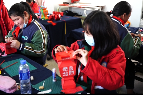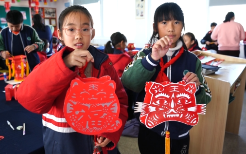 曹村鎮學校曼妙燈彩課程指導老師李仁秋說:“做一個虎年主題的燈彩,來迎接中國傳統的春節,也感受下中國傳統的文化!