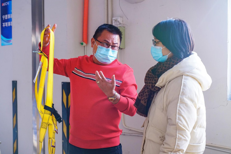 盡管臨近過年,位于婺城區臨江工業園區的某工具生產車間內依舊一派繁忙!斑@些安全繩是出口到美國的,這一批是出口到西班牙的。我們的訂單已經排到了5月份,所以工人們都還在堅守崗位!痹摴矩撠熑笋T銘說。