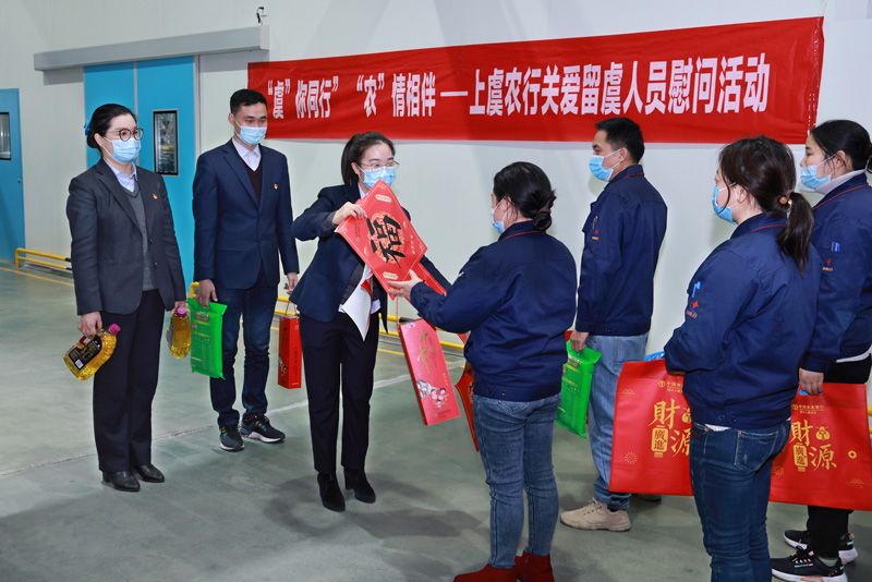 農行浙江紹興上虞支行慰問留虞務工人員。農行紹興分行供圖