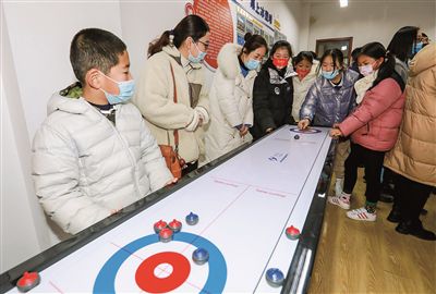 2月7日,北京冬奧會冰壺比賽激戰猶酣,在全國青少年校園冰雪運動特色學!獙幉ㄊ墟偤^駱駝實驗學校,“慶中國北京冬奧,展寧波體教風采”桌上冰壺球趣味挑戰賽正在進行!澳壳,全校二年級至八年級的1600名學生已全部參與桌上冰壺球運動!痹撔@蠋熋缍ǔf。
