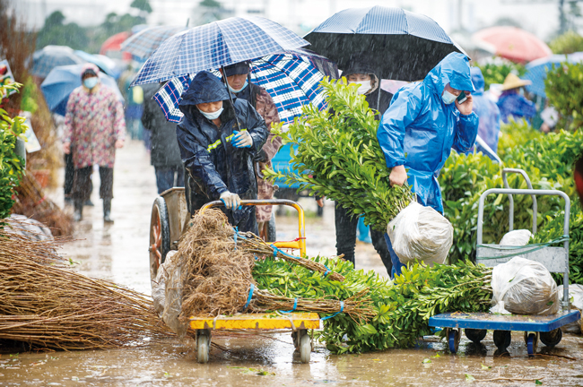 2月7日,金華市金東區澧浦苗木城虎年新春開市。作為華東地區最大的花卉苗木交易集散中心,澧浦苗木城首日交易活躍,市場里的果苗品種多達百個,前來采購的客商絡繹不絕。(胡肖飛)