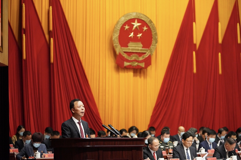余杭區人民政府代區長王牮向大會作政府工作報告。人民網 郭揚攝