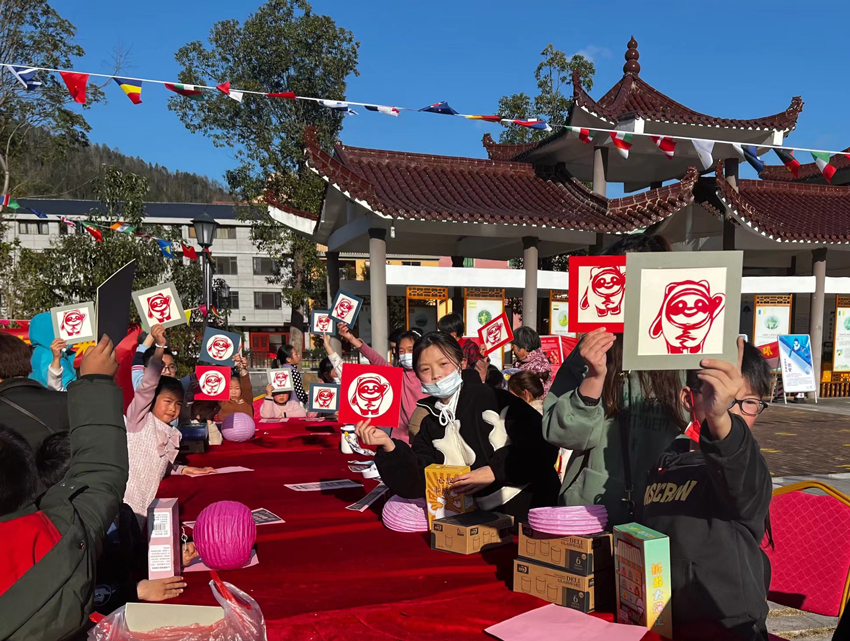 在剪紙藝人吳芳芳的耐心講解和指導下,孩子們用紅紙和剪刀,剪出了一個個憨態可掬的“冰墩墩”。在講授剪紙技藝的同時,吳芳芳還給孩子們普及了傳統文化知識!拔蚁Mㄟ^傳授剪紙技藝的方式,讓他們在剪‘冰墩墩’的過程中,感受非遺剪紙的文化魅力,同時充實孩子們的寒假生活!眳欠挤颊f道。