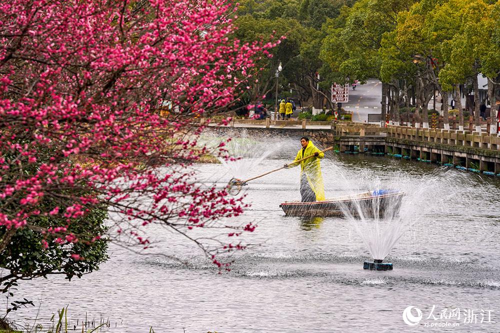 盡管天空飄著細雨,舟山普陀山司基畈河上,河道保潔員仍在辛勤工作著,打撈水面漂浮物,保護水生態環境……守護一汪碧綠的清水,已成為普陀山人的習慣。