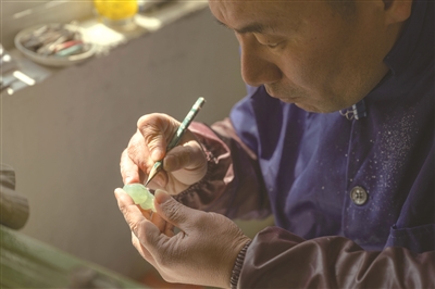 “完成一件玉雕作品,需要經過選料、畫樣、定型、精雕、打磨拋光等多個環節!睂O耀春說,其中精雕是完成人物五官等細節的核心步驟,最考驗玉雕師傅的手藝。
