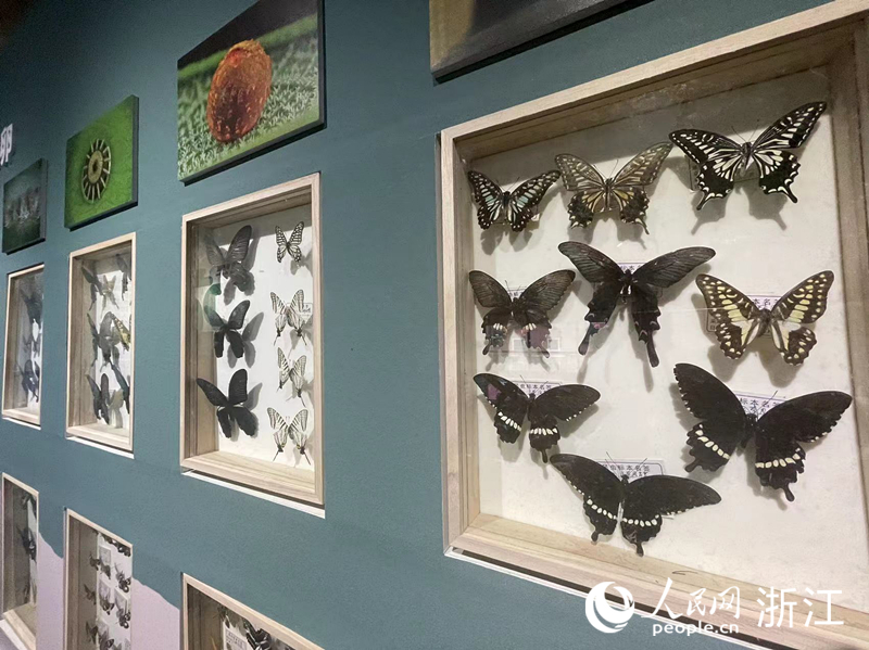 展廳內滿墻的蝴蝶標本。人民網 王蕭蕭攝