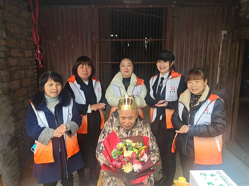 志愿者為張華亮慶祝生日。峰江街道供圖