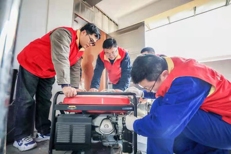 紅船黨員服務隊檢查為“無汗男孩”保障“生命電”的發電機。姚靖霖攝
