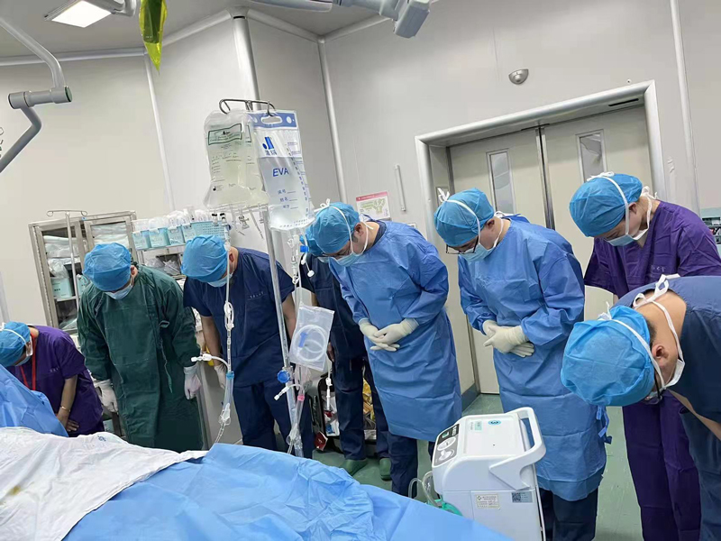 手術前,醫護人員人員向金彤鞠躬致敬