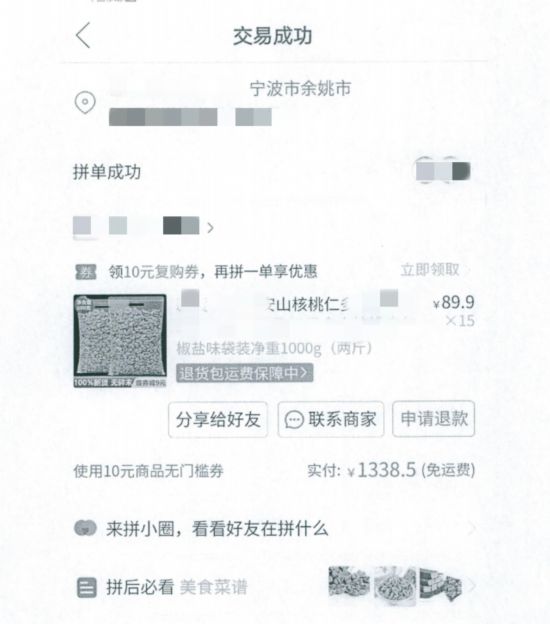 網購600袋山核桃仁后,寧波余姚男子起訴賣家賠14萬元……