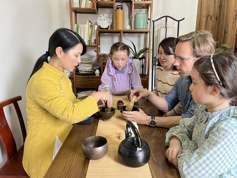 據了解,當天下午,百余名海外華文學校的師生,借助網絡平臺一起觀摩了宋式點茶的制作。