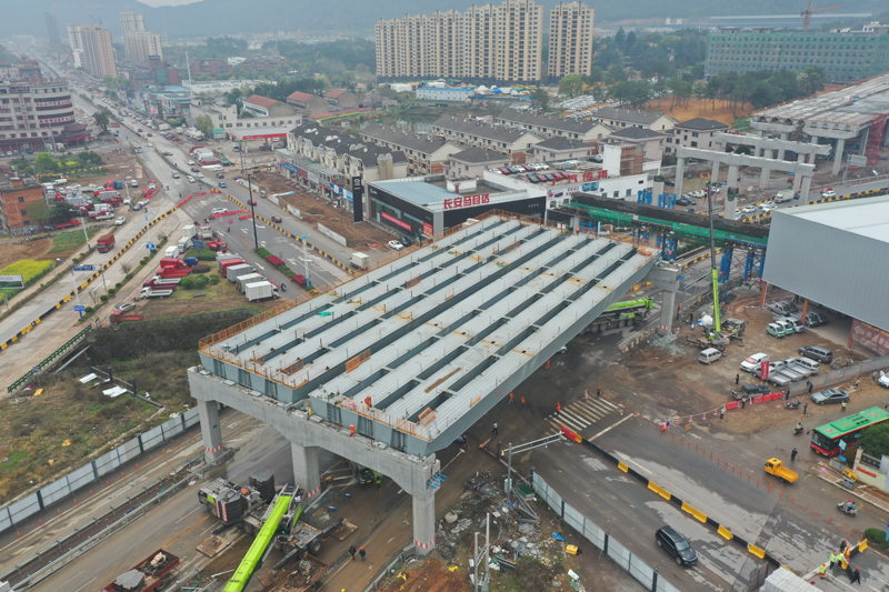 為保證鋼箱梁吊裝施工的安全有序,義東指揮部及參建單位積極對接交警部門,周密制定交通組織方案,合理安排施工順序及施工周期,并對相關道路進行了改道,保證在施工期間留出一條進出城的通行通道,最大限度減少施工對城市交通的影響。吊裝過程中,項目領導現場帶班,安全、技術人員全程盯控施工,確保吊裝的每一個環節都嚴格按照標準實施,外圍則由引導員進行交通引導,有效確保了鋼箱梁吊裝的順利完成。