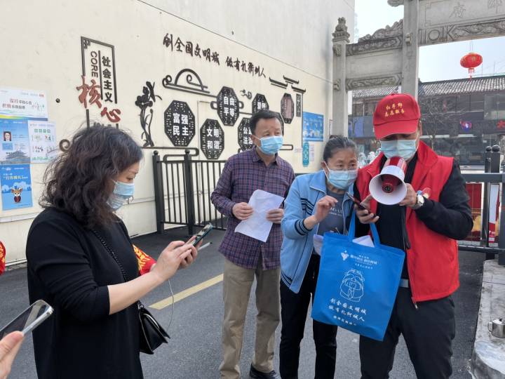 “請大家佩戴好口罩,不扎堆、少聚集!3月17日上午,在衢州市柯城區府山街道天皇巷社區府邸景苑小區,小區黨員“抗疫”先鋒隊隊長陸勝健身穿“紅馬甲”、手持小喇叭,在小區內開展巡查!岸嘁环至α考尤,‘抗疫’離成功就又近了一步!弊鳛橐幻艘圮娙酥驹刚,陸勝健組建起一支23人小區黨員“抗疫”先鋒隊,主動參與核酸檢測動員、現場秩序維護等工作。