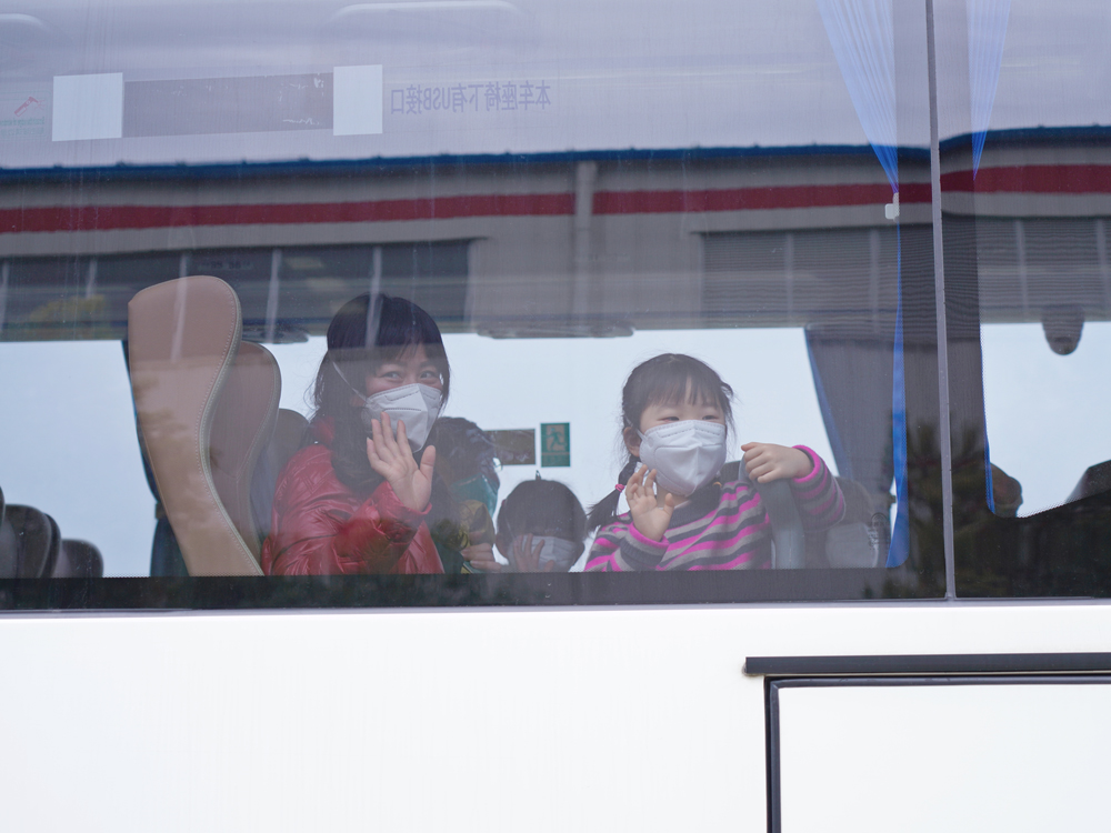 解除隔離人員乘坐大巴“回家”。余杭區交通運輸局供圖