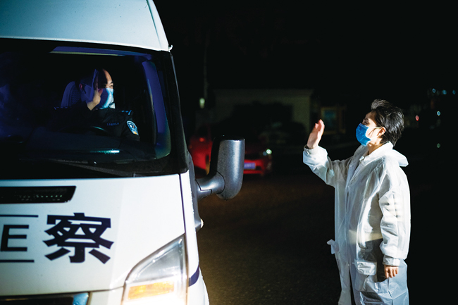 3月18日凌晨0時,金華市金東區塘雅鎮含香村解除管控。塘雅鎮黨委副書記、鎮長樓淑穎和其他鄉鎮工作人員向并肩作戰多日的志愿者和工作人員道別。據了解,3月13日晚,含香村被劃定為“防范區”。管控期間,金東區經過5輪核酸檢測,結果全部為陰性后,含香村解除管控。(陳俊、黃澤振)