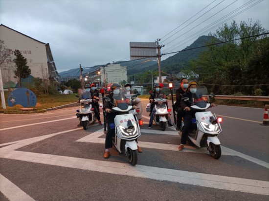 “預返鄉、需報備,隱瞞不報要追責;要出門,戴口罩,安全距離需記牢;勤消毒、常通風,不讓病毒進家中……”連日來,蒼南縣南宋鎮轄區沿線的幾個村里,“電動車巡邏隊”的宣傳口號每天都會準時響起。據悉,該巡邏隊由南宋鎮村干部、黨員、網格員、志愿者組成。晚間,大家騎著電動車在特定地點集合,戴上口罩和紅袖標后,便開始騎過一個又一個路口,深入大街小巷,沿途利用擴音小喇叭宣傳疫情防控知識,他們的身影已然成為南宋鎮防疫路上一道獨特的風景線。