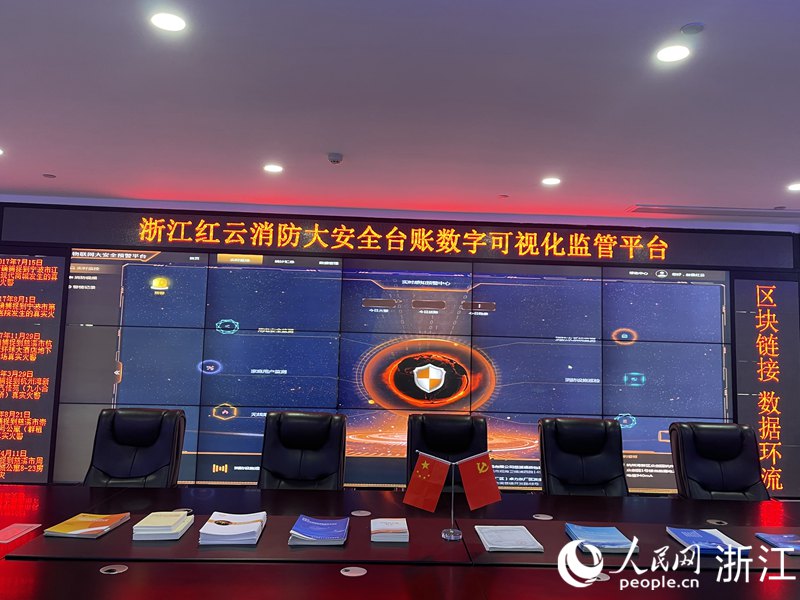 浙江紅云消防大安全臺賬數字可視化監管平臺。人民網 王蕭蕭攝