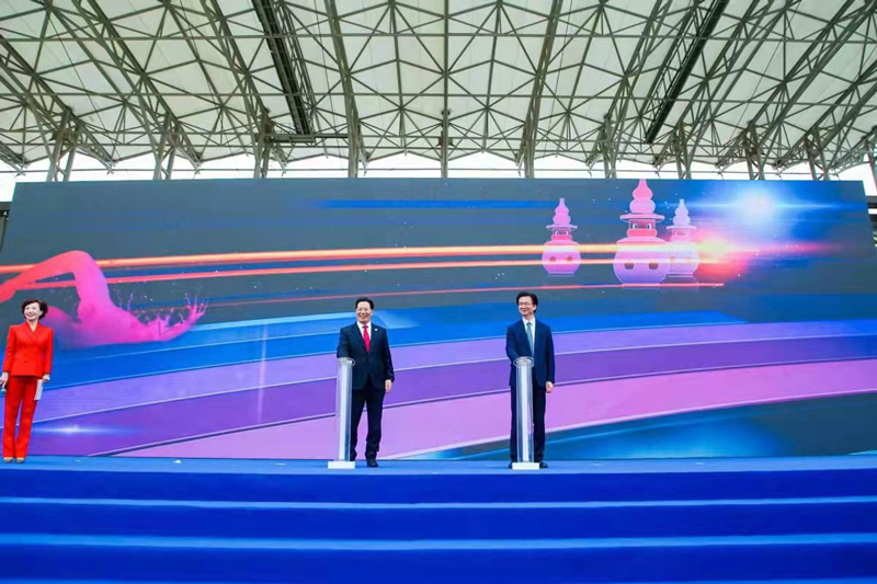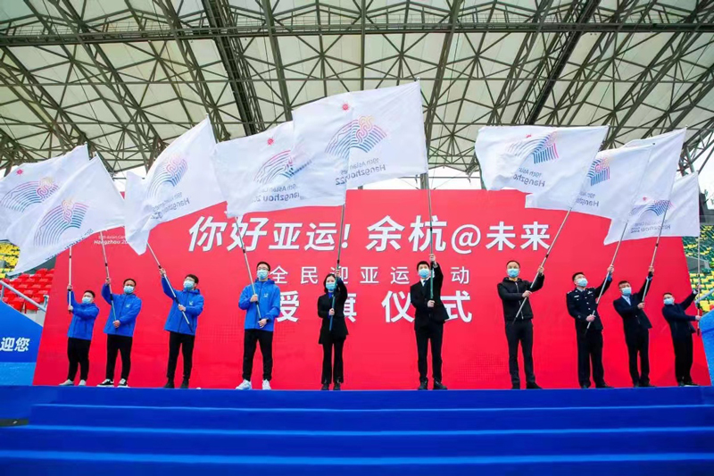 4月1日,杭州舉行亞運籌辦“決勝攻堅”誓師動員大會,余杭以“你好亞運!余杭@未來”為主題,在杭州師范大學倉前校區體育場舉行分會場活動。