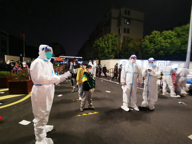 當天凌晨時分,分區轉運工作仍在緊張進行當中,“香溢”志愿者已經連續工作了整整12個小時,但沒有一個人選擇退縮,仍堅守在防疫一線。