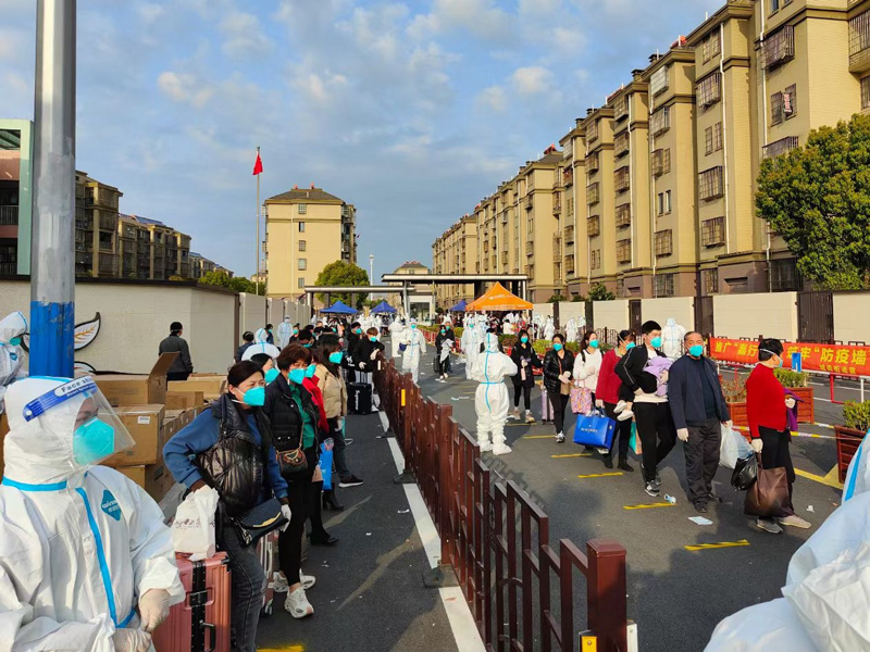 “請大家保持一米距離”“請大家跟我走”,抵達現場后,“香溢”志愿者迅速投入到緊張的轉運工作中。幫助上年紀的群眾掃碼填寫信息,引導群眾有序上車,幫忙搬運轉運行李……志愿者化身“大白”,穿梭在人群中。