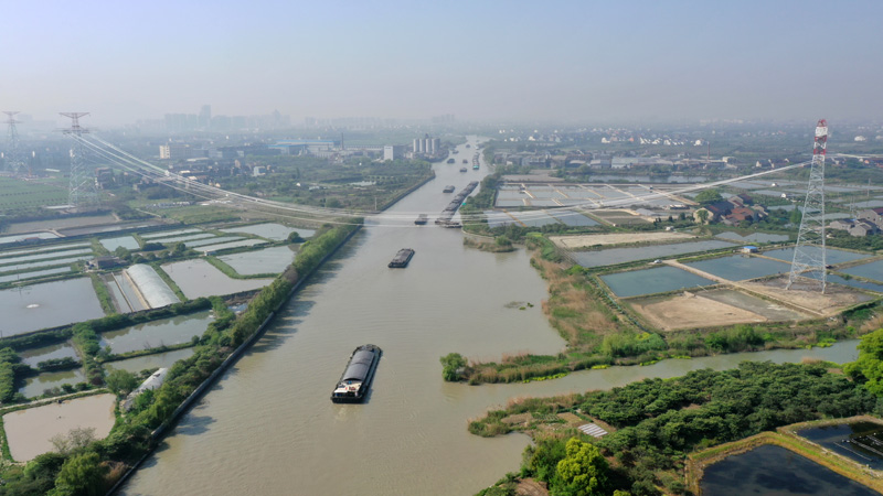 4月8日,位于杭州臨平與湖州德清交界處的白鶴灘—浙江±800千伏特高壓直流輸電工程的架線現場正在緊張施工。隨著牽張機的轟鳴,該工程的第二相導線緩緩引出并順利越過京杭大運河,標志著國家電網建設的白鶴灘—浙江特高壓直流輸電工程完成京杭大運河的首次跨越。