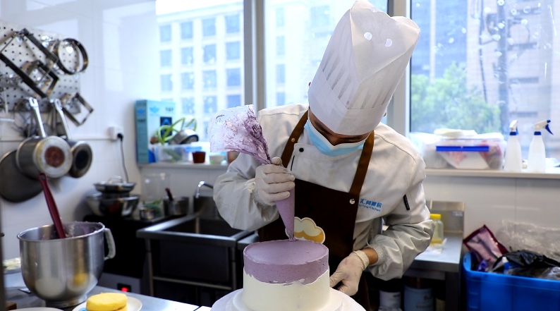 小豆豆和家人之前剛剛入住集中隔離點,登記信息時,細心的工作人員注意到她即將迎來周歲生日,大家立馬行動起來,為她預訂蛋糕、挑選禮物。4月13日一大早,西點師徐燕平就為小豆豆的專屬生日蛋糕忙活起來,烘烤出3層規則的蛋糕胚,蓋上切成小塊的哈密瓜和芒果,再抹上打得蓬松的奶油……在她嫻熟的手法下,精致可愛的水果蛋糕很快“新鮮出爐”。